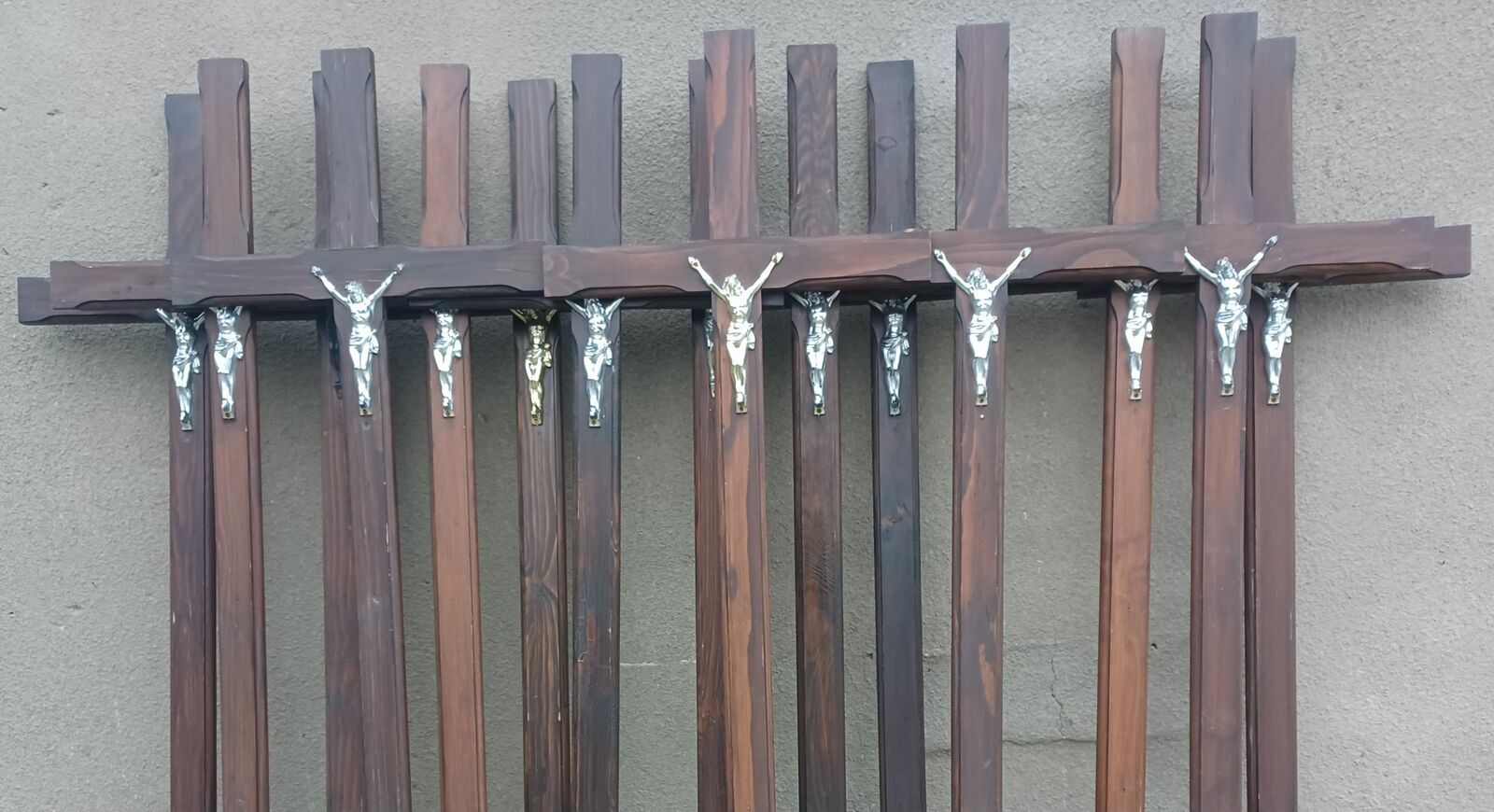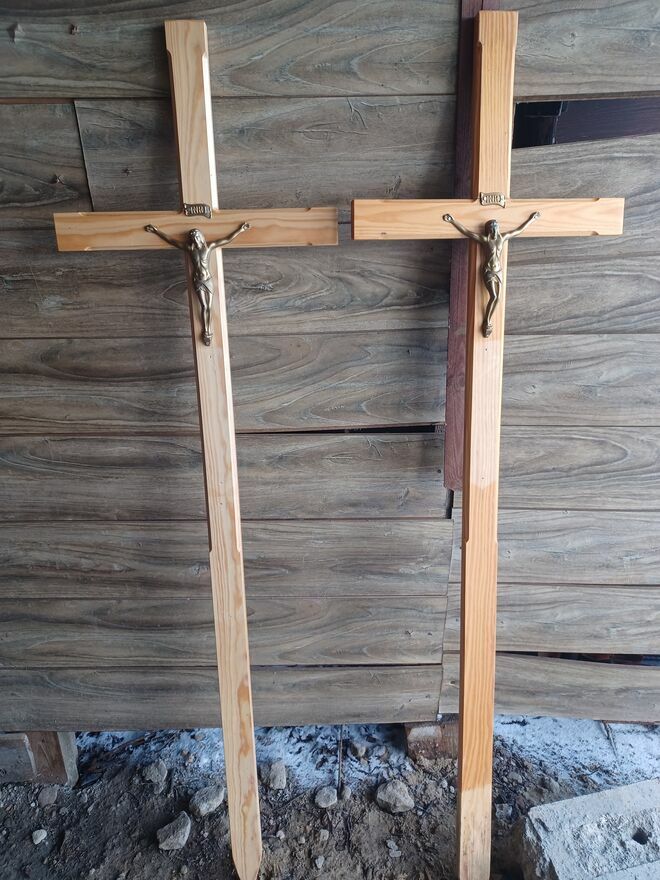 Sprzedam używane krzyże drewniane nagrobne z wizerunkiem. Różne kolory, wysokości.Ceny od 30zł do 50zł w zależności od stanu krzyża.