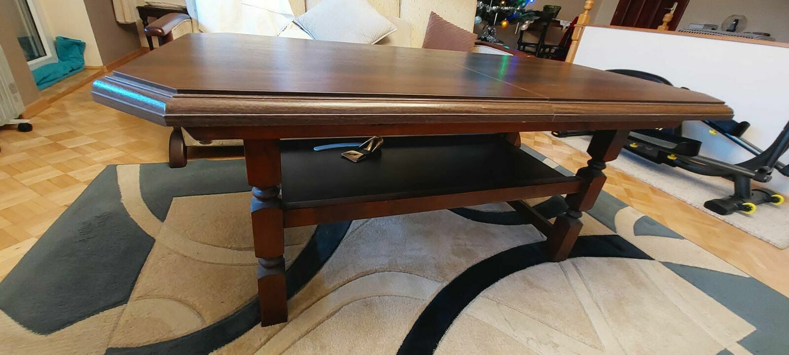 Sprzedam solidną, drewnianą ławę rozkładaną. Mebel jest w dobrym stanie, z widocznymi śladami użytkowania (lekko obtarte narożniki), ale wciąż w pełni funkcjonalny, mechanizm działa bez zarzutu. Idealny do salonu, jadalni lub na taras.Wymiary blatu: 134x69 cm i 184x69 cm (rozłożony)