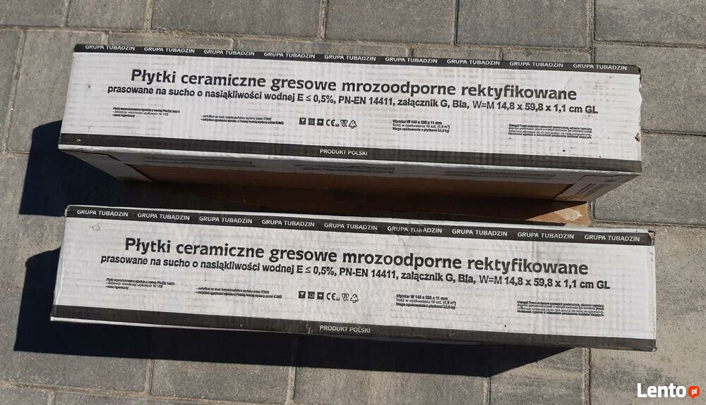 Na sprzedaż płytki ceramiczne gresowe mrozoodporne rektyfikowane o strukturze drewna - 2 kartony, nowe, zapakowane, razem 1,77m2. Gratis dwie uszkodzone płytki, razem około 0,17m2 (nadają się do przycięcia, uszkodzenie tylko na rogach). Wymiary płytek: szerokość 14,8 cm, długość 59,8 cm, grubość 1,1 cm.Sprawdź zainteresowanie tym ogłoszeniem